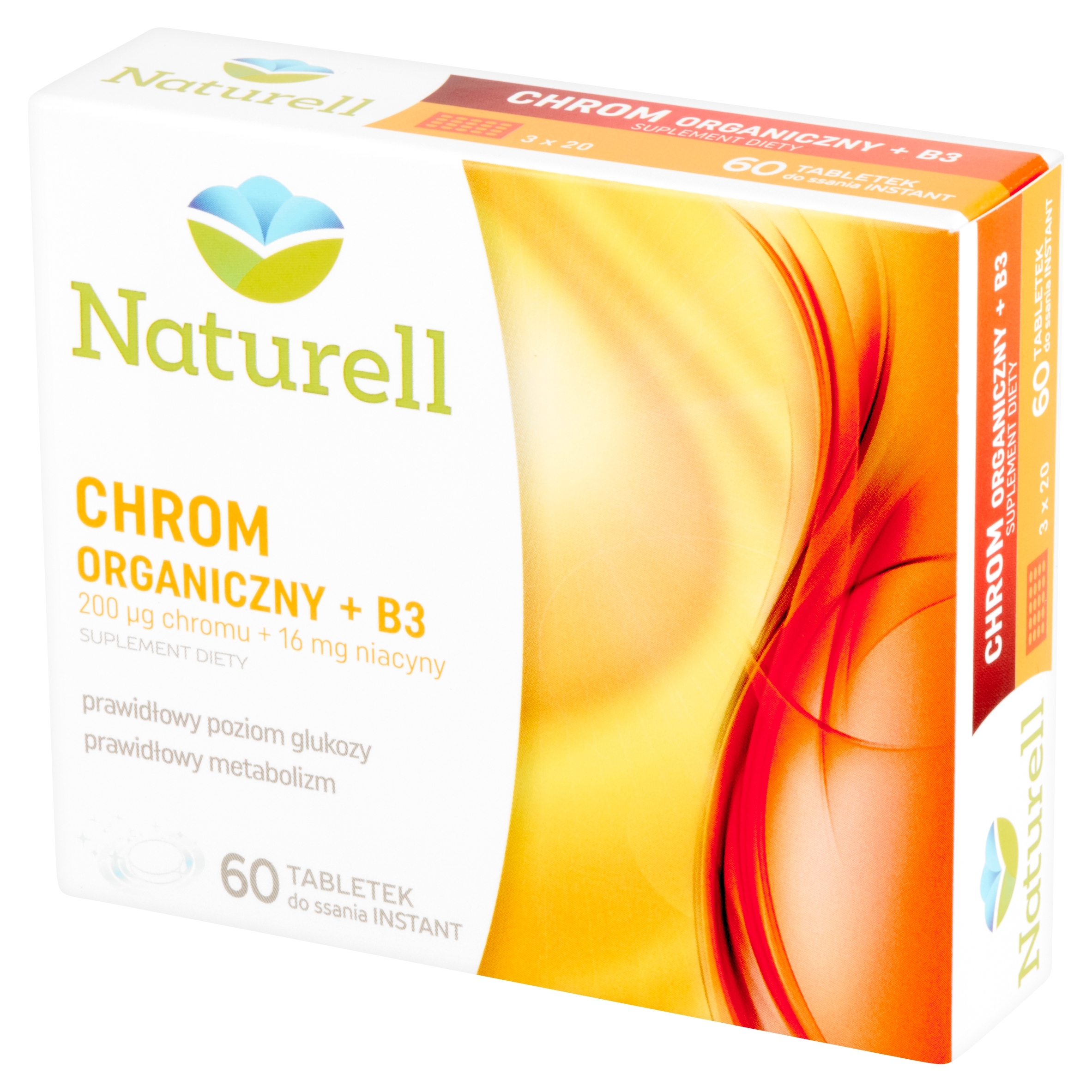 Naturell Chrom organiczny + B3 Suplement diety 60 tabletek do ssania Instant