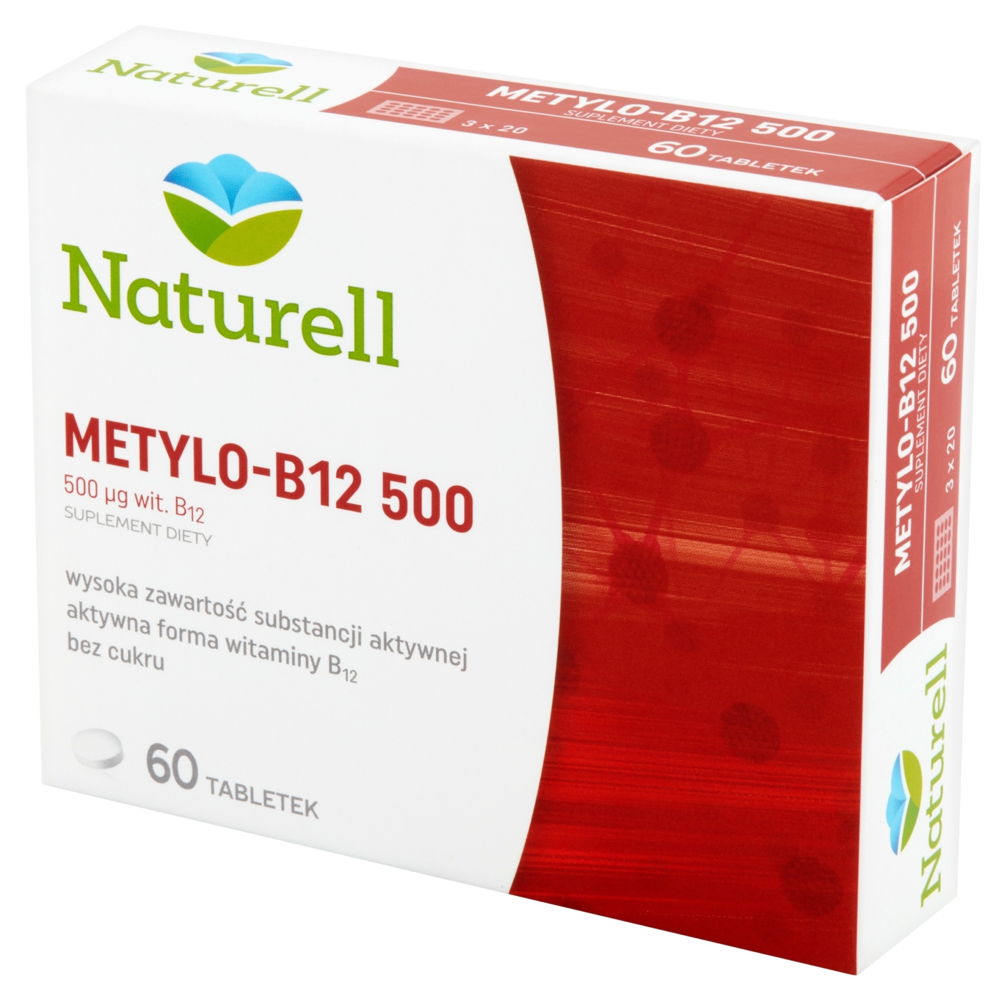 Naturell Metylo-B12 500 zawiera metylokobalaminę, która jest aktywną formą witaminy B12, dlatego nie musi ulegać przekształceniu w organizmie. Wysoka zawartość substancji aktywnej umożliwia osiągnięcie optymalnego poziomu witaminy B12 w organizmie. Preparat nie zawiera cukru.