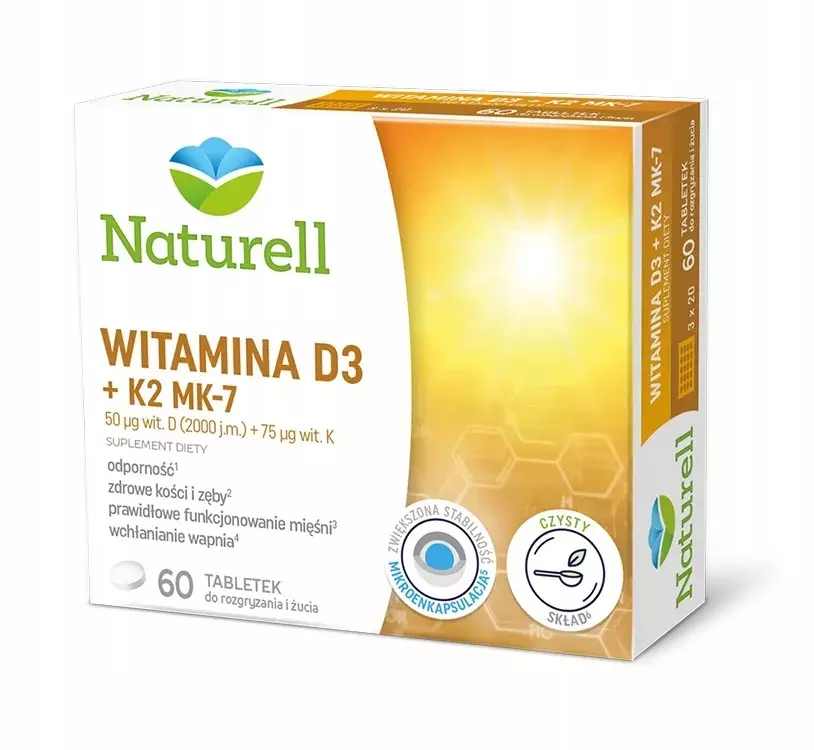 Naturell Witamina D3 2000 + K2 MK7 60 Tabletek