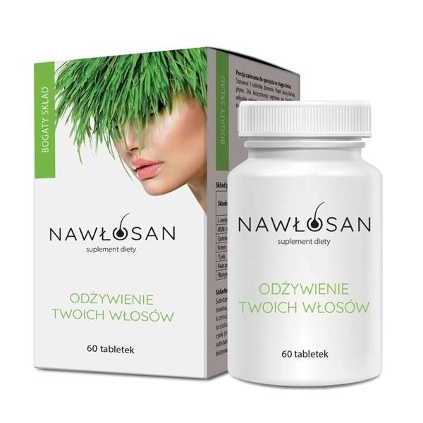 Uzupełnianie codziennej diety w składniki zawarte w suplemencie diety Nawłosan zapewnia włosom odżywienie i pomaga utrzymać je w dobrej kondycji. Skład preparatu tworzą takie składniki jak cynk, krzem, cysteina, L-metionina, MSM, kwas pantotenowy i biotyna. Cysteina i metionina to aminokwasy siarkowe, które są niezbędne dla zdrowych włosów. Biotyna wspiera utrzymanie zdrowej skóry i włosów, a cynk dodatkowo wspomaga utrzymanie mocnych paznokci.