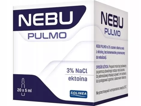 Nebu Pulmo to 3 % roztwór do inhalacji z ektoiną w postaci ampułek. Wyrób medyczny wspomaga usuwanie nadmiaru wydzieliny zalegającej w drogach oddechowych, stabilizuje komórki nabłonkowe, poprawia funkcje surfaktantu płucnego i łagodzi stan zapalny, ułatwiając w ten sposób oddychanie. Zawarta w preparacie ektoina stabilizuje błonę śluzową, błony komórkowe, białka zewnątrzkomórkowe, makrocząsteczki oraz łagodzi stan zapalny w płucach.