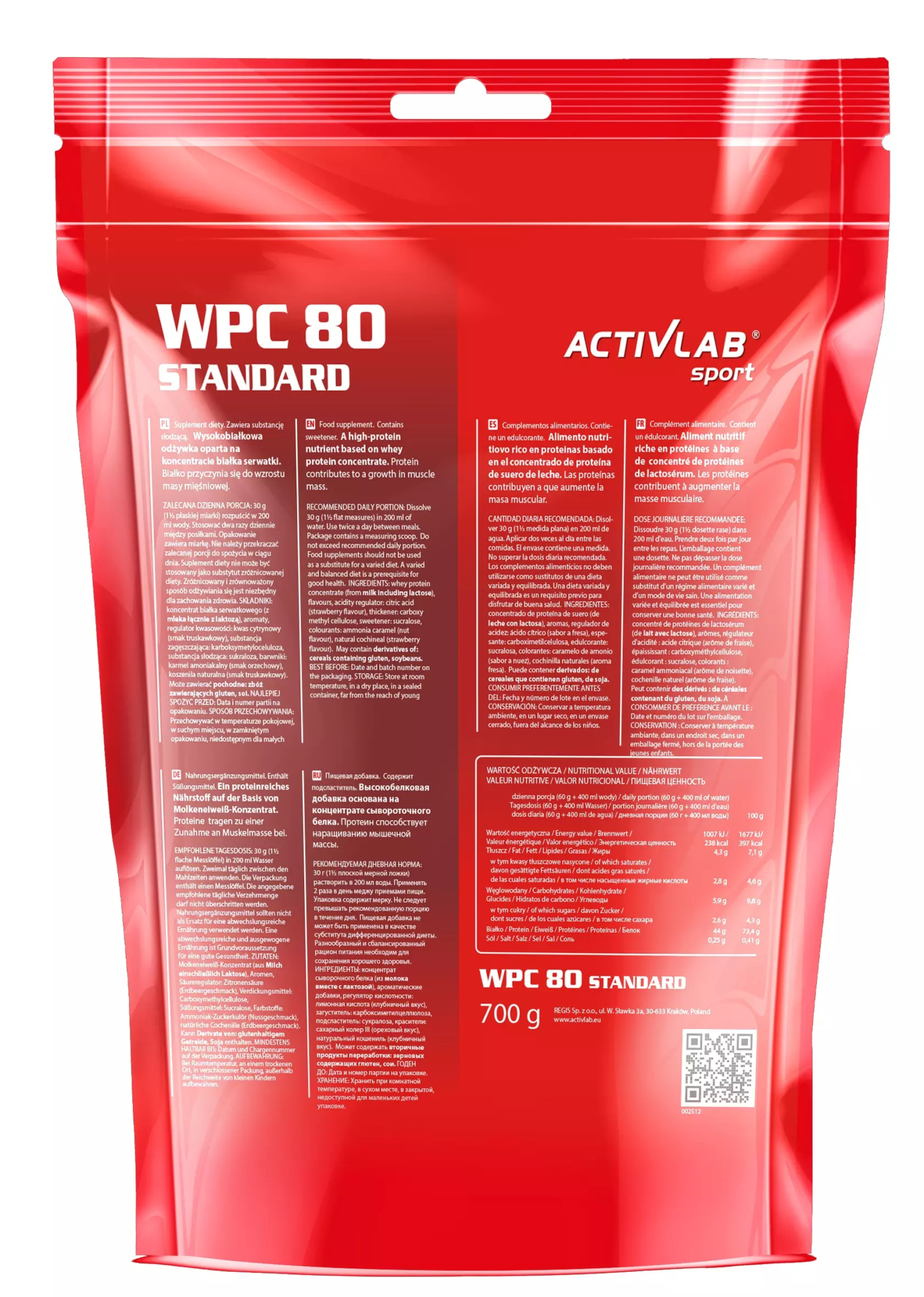 WPC 80 Standard Activlab to klasyczna wysokobiałkowa odżywka oparta na koncentracie białka serwatki i o niskiej zawartości cukru. Nie zawiera aspartamu!