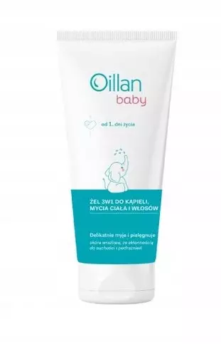 Żel 3w1 do kąpieli, mycia ciała i włosów Oillan Baby wyróżnia się łagodną formułą, która nie wywołuje podrażnień i nie przesusza naskórka. Nie powoduje także łzawienia. Delikatne substancje myjące oczyszczają skórę i włosy maluszkajednocześnie je nawilżając i odżywiając. Zawarte w składzie substancje aktywne pozostawiają na naskórku cienką warstwę ochronną wspierającą jego naturalny płaszcz hydrolipidowy. Zwiększają jego odporność na czynniki zewnętrzne i zatrzymują wilgoć w komórkach skóry.