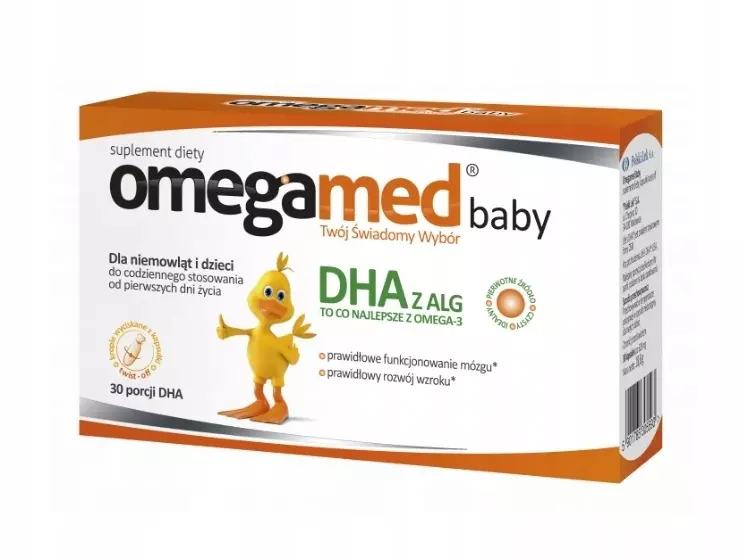 Omegamed Baby to suplement diety w formie wygodnych kapsułek twist-off przeznaczony do podawania dla dzieci oraz niemowląt od pierwszego dnia życia. Omegamed Baby zawiera unikalną formułę DHA z alg.