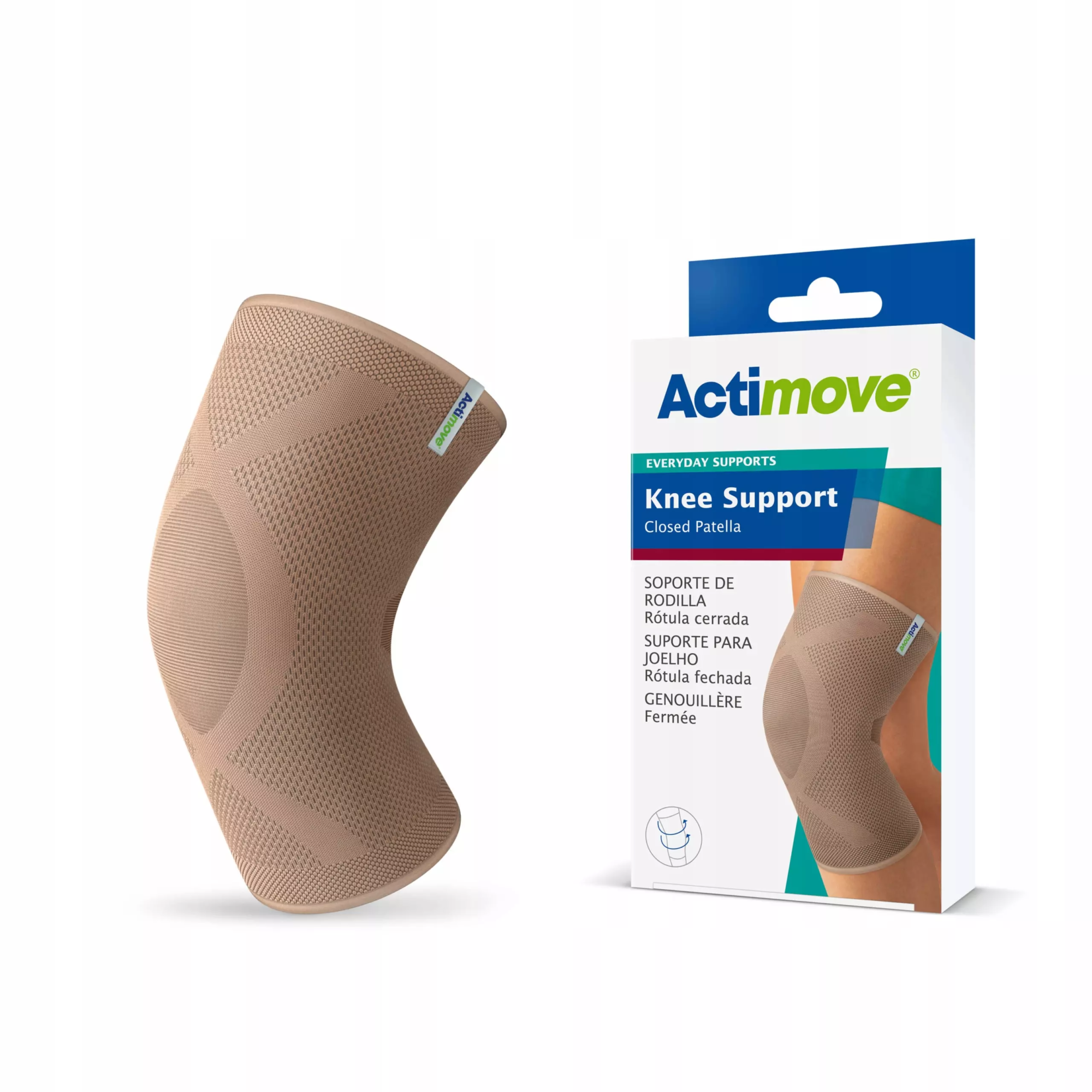 Elastyczna opaska na kolano marki ACTIMOVE wykonana została z antyalergicznego materiału bez dodatku lateksu i neoprenu. Zapewnia mocny ucisk na całej powierzchni stawu kolanowego utrzymując ciepło w obrębie stawu. Opaska jest całkowicie bezszwowa i oddychająca zapewniając wysoki komfort i wygodę nawet podczas całodniowego noszenia.