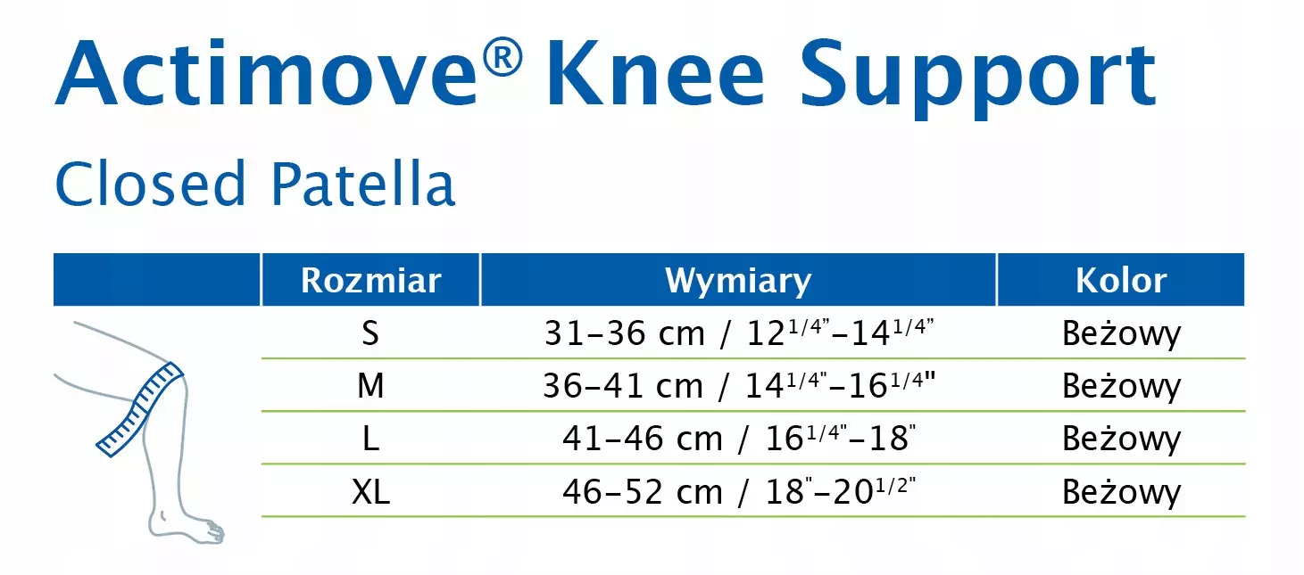 W celu dobrania odpowiedniego rozmiaru zmierz obwód wokół środka kolana.