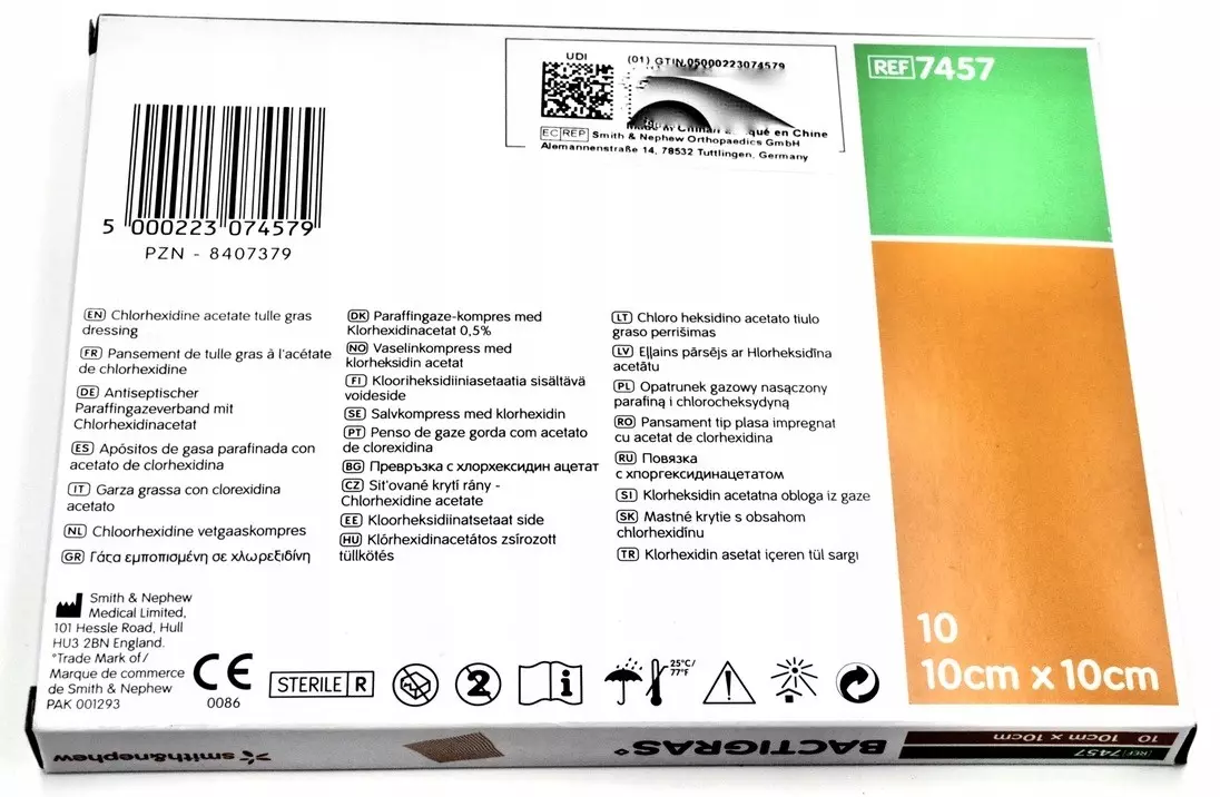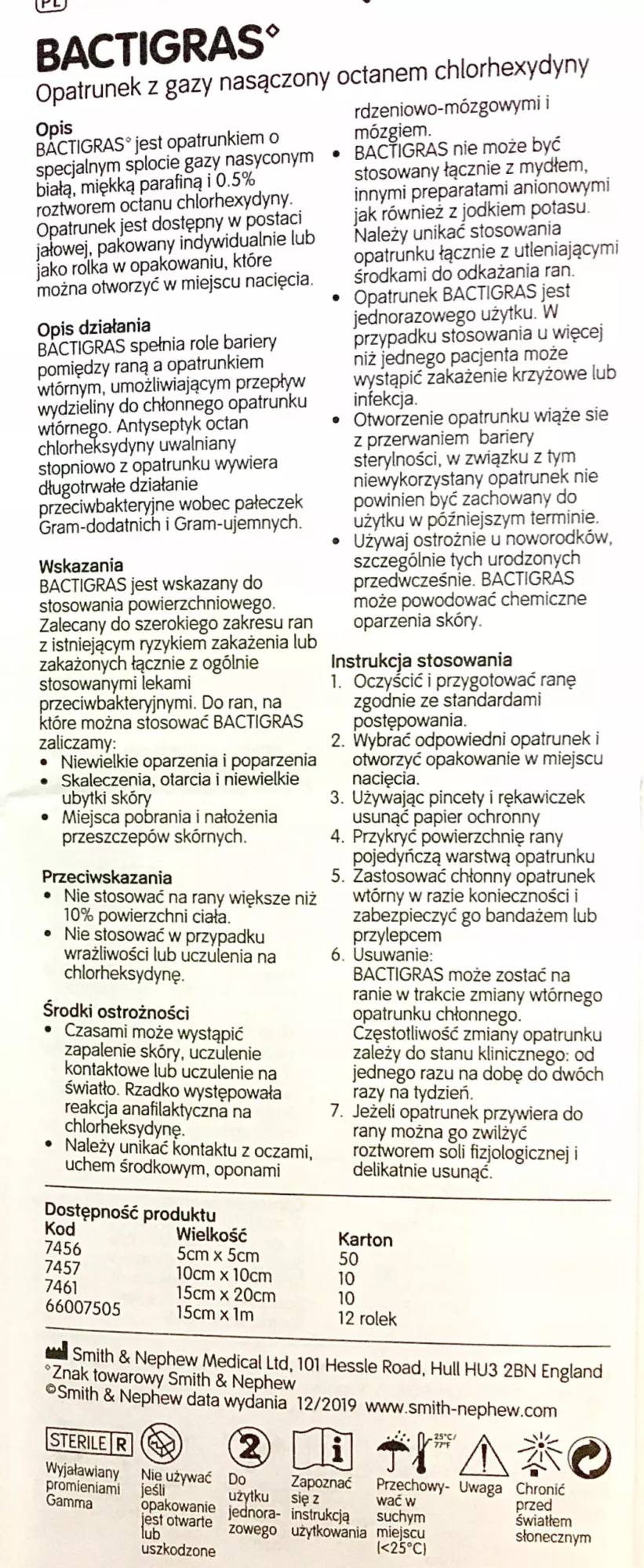 Opatrunek Parafinowy Z Chlorheksydyną S&N Bactigras 10cm x 10cm 10 Sztuk