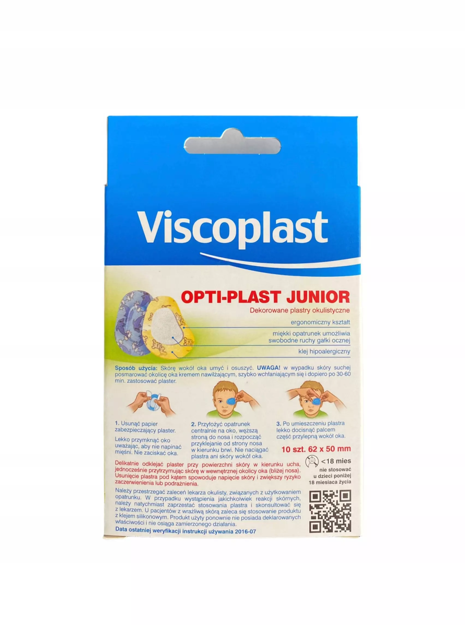 Viscoplast™ OPTI-PLAST JUNIOR dekorowane plastry okulistyczne to plastry na podłożu z włókniny, z miękkim opatrunkiem o konstrukcji umożliwiającej swobodny ruch powieki.