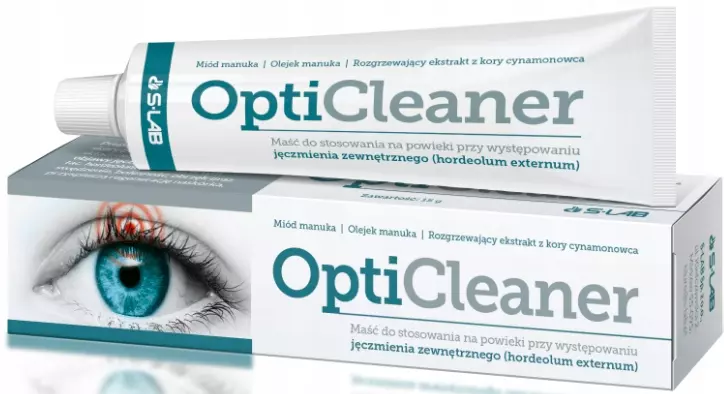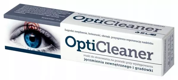 Opticleaner to maść do stosowania na powieki przy występowaniu jęczmienia zewnętrznego i gradówki. Preparat Opticleaner zawiera kompozycję składników, których działanie łagodzi objawy jęczmienia zewnętrznego i gradówki w tym swędzenie, bolesność, obrzęk oraz przyspiesza regenerację naskórka.