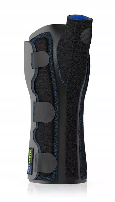 Orteza stabilizująca nadgarstek i kciuk. Pewna stabilizacja stawu śródręczno-paliczkowego ze zdejmowanym unieruchomieniem, do noszenia na lewej lub prawej dłoni.