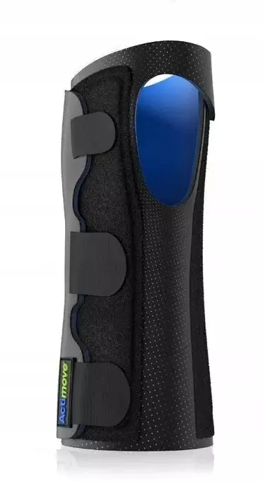 Stabilizacja nadgarstka przy użyciu anatomicznie wyprofilowanego wyjmowanego unieruchomienia, które może być stosowane na lewej lub prawej ręce.