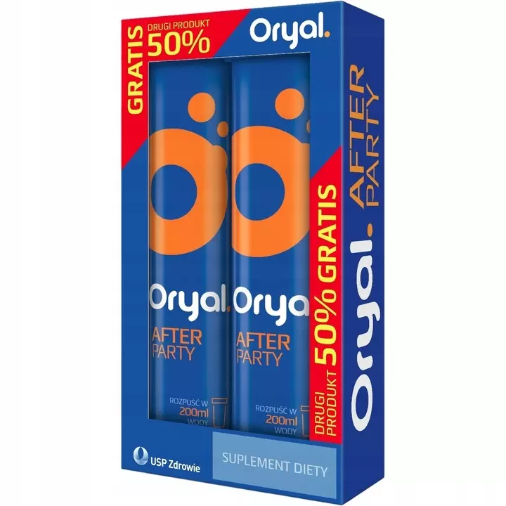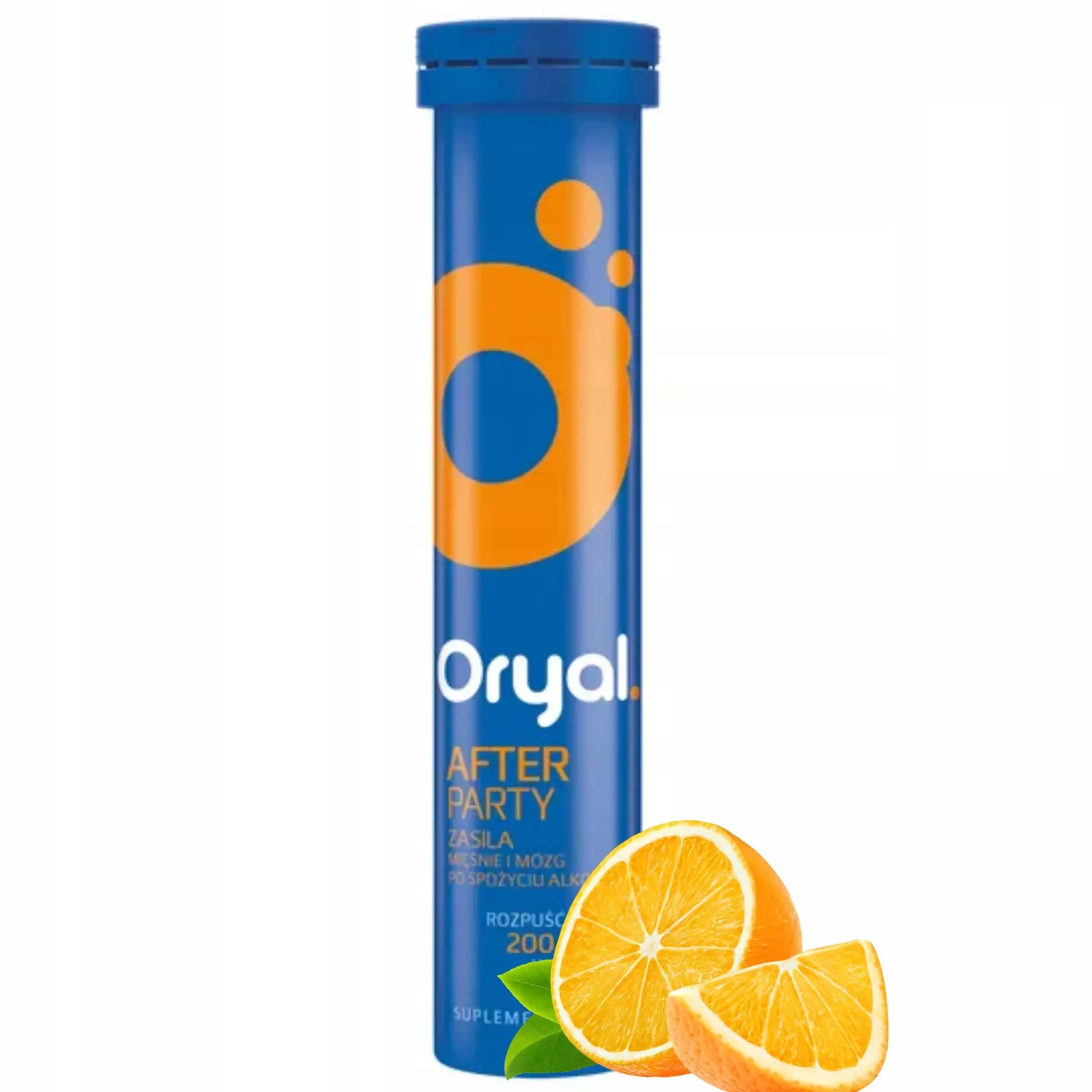 Oryal After Party 36 (2x18) tabletek musujących to suplement diety w postaci tabletek musujących, zawierający elektrolity.