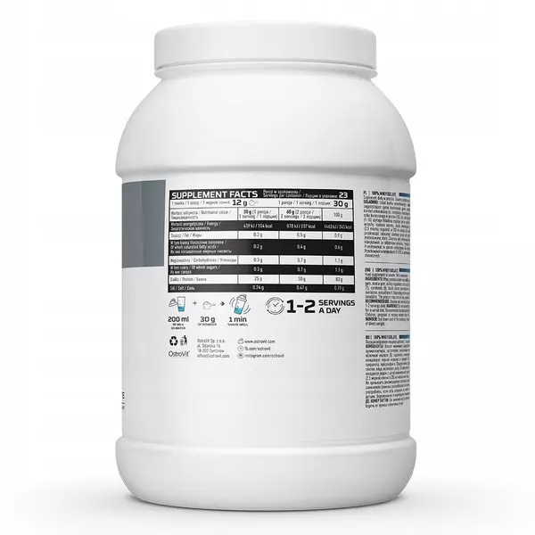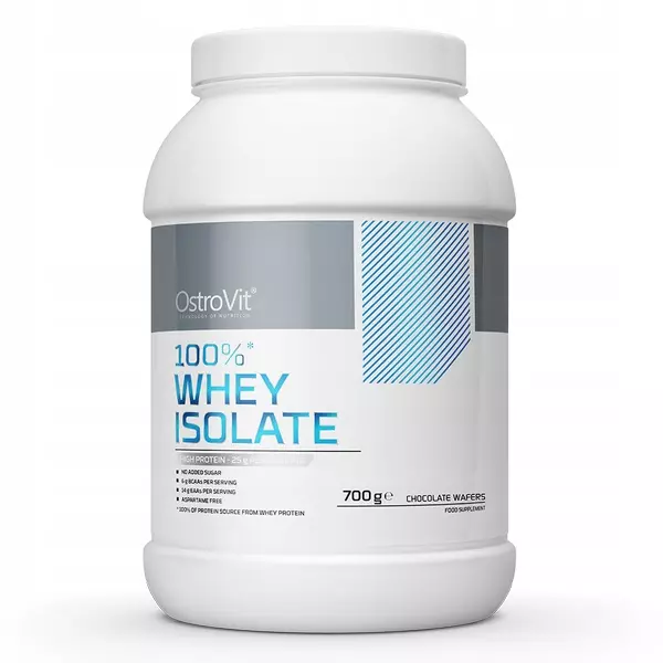 OstroVit 100% Whey Isolate 700 g to najwyższej jakości izolat białka serwatkowego, które uznawane jest za najbardziej wartościowe źródło białka stosowanego w sporcie. Preparat otrzymywany jest w procesie mikrofilitracji przepływu krzyżowego, który przebiega w niskiej temperaturze. Idealnie nada się w zarówno w okresie budowania masy mięśniowej jak i redukcji tkanki tłuszczowej.