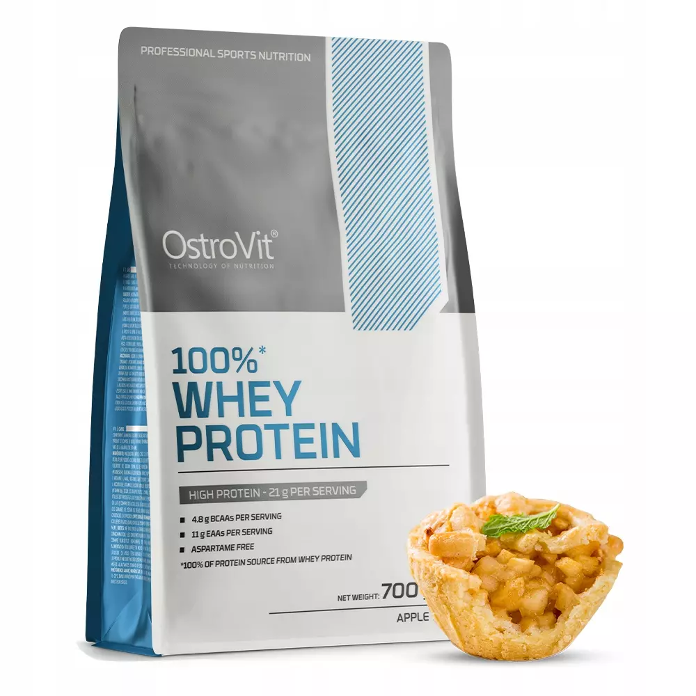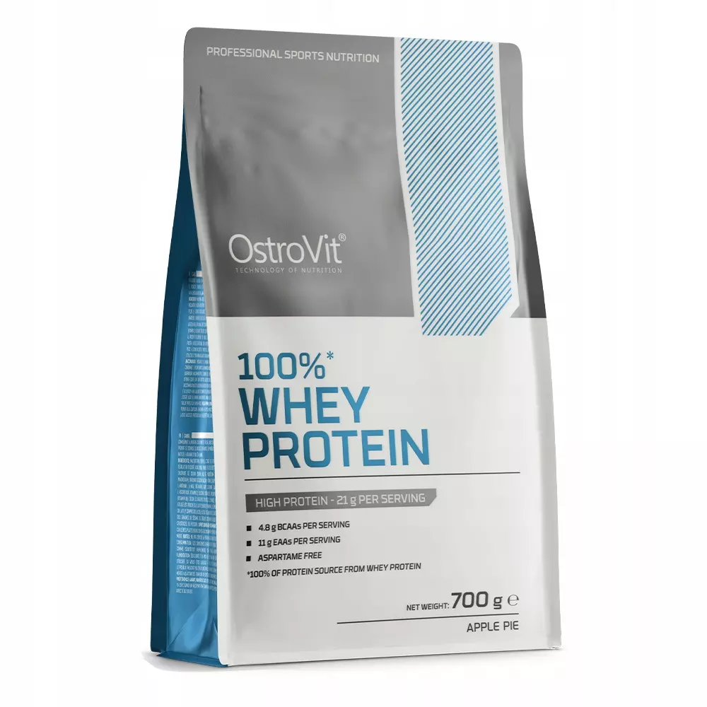 OstroVit 100% Whey Protein to suplement diety, który stanowi źródło koncentratu białka serwatki, zawierającego aż 70% wysokiej jakości protein. To preparat, który dostarcza do organizmu aminokwasy rozgałęzione BCAA, a także niezbędne aminokwasy egzogenne EAA. To niskotłuszczowy produkt, dostępny w postaci proszku w różnych wariantach smakowych, który został stworzony z myślą o sportowcach i osobach, którym zależy na uzupełnieniu codziennej diety w cenny makroskładnik.