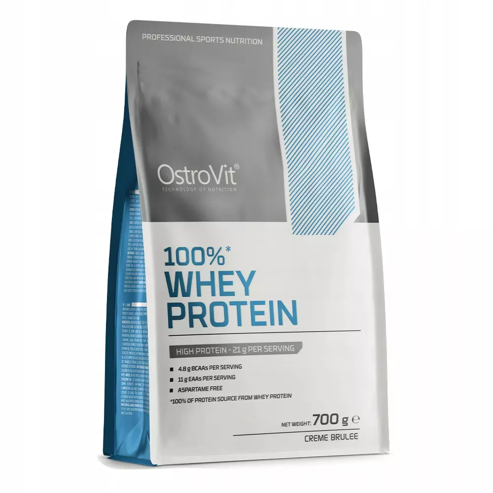 OstroVit 100% Whey Protein to suplement diety, który stanowi źródło koncentratu białka serwatki, zawierającego aż 70% wysokiej jakości protein. To preparat, który dostarcza do organizmu aminokwasy rozgałęzione BCAA, a także niezbędne aminokwasy egzogenne EAA. To niskotłuszczowy produkt, dostępny w postaci proszku w różnych wariantach smakowych, który został stworzony z myślą o sportowcach i osobach, którym zależy na uzupełnieniu codziennej diety w cenny makroskładnik.