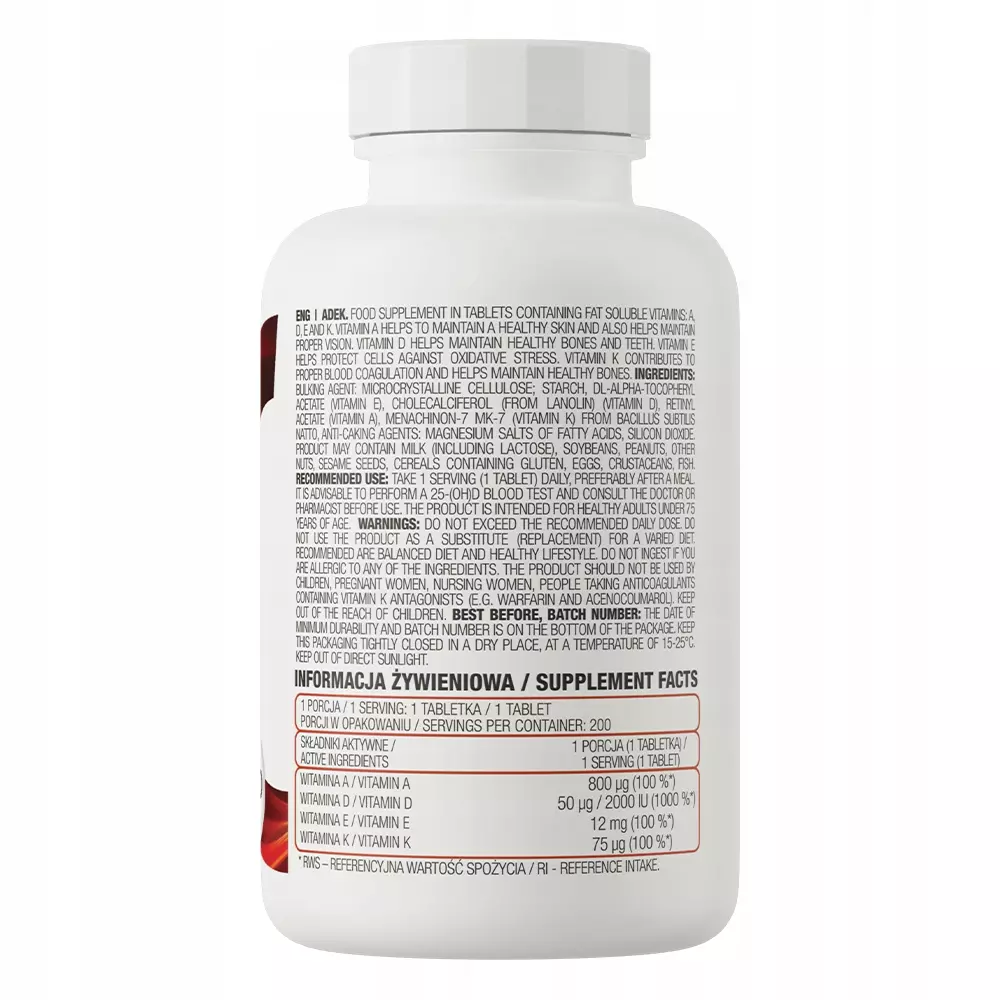 - Aż 200 tabletek z witaminami ADE i K w opakowaniu