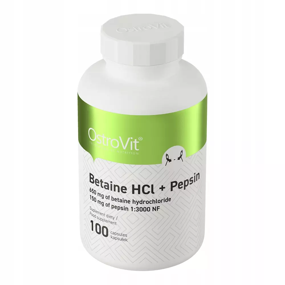 OstroVit Betaina HCL + Pepsyna 650mg + 150mg Układ Trawienny 100 Kapsułek