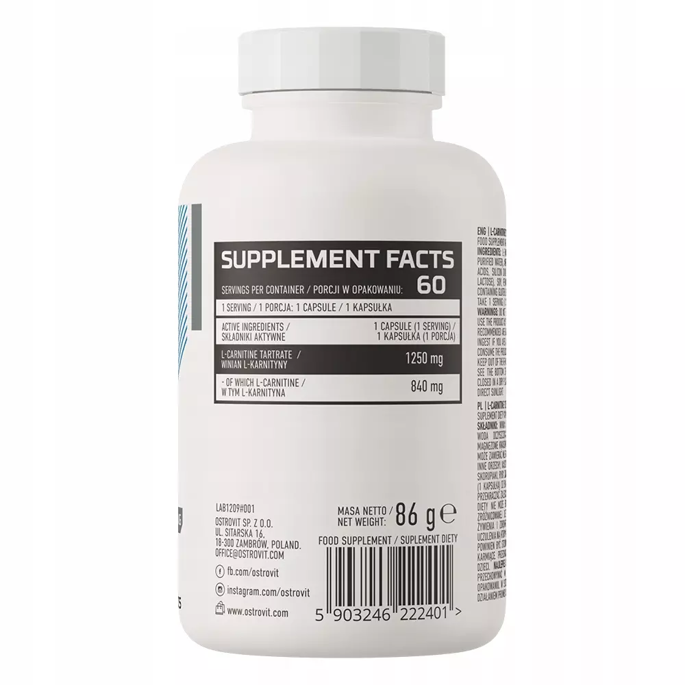 OstroVit L-Carnitine Karnityna Spalacz 1250mg 60 Kapsułek