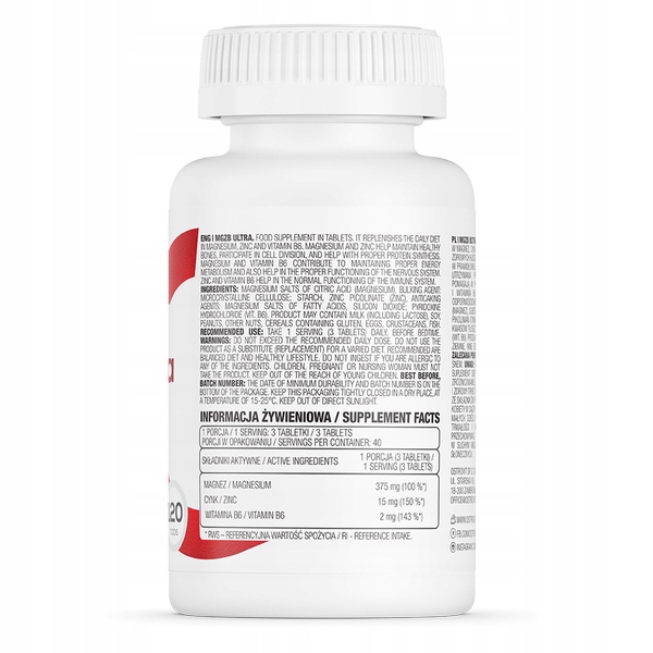 OstroVit MgZB Ultra Magnez Cynk Witamina B6 Dla Aktywnych 120 Tabletek