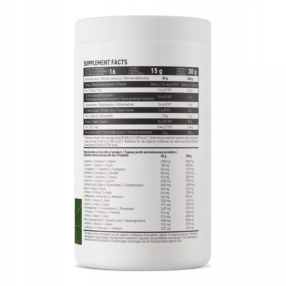- Prosty skład - produkt zawiera wyłącznie izolat białka grochu, bez zbędnych dodatków.
