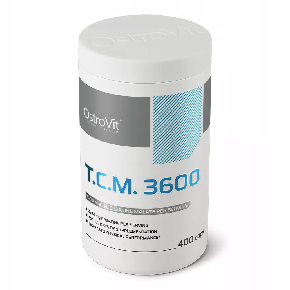 OstroVit T.C.M. 3600 mg to wysokiej jakości suplement diety, który stanowi źródło jabłczanu kreatyny. To preparat o prostym składzie, dostępny w postaci łatwych do połknięcia kapsułek, stworzony z myślą o sportowcach i osobach aktywnych fizycznie.