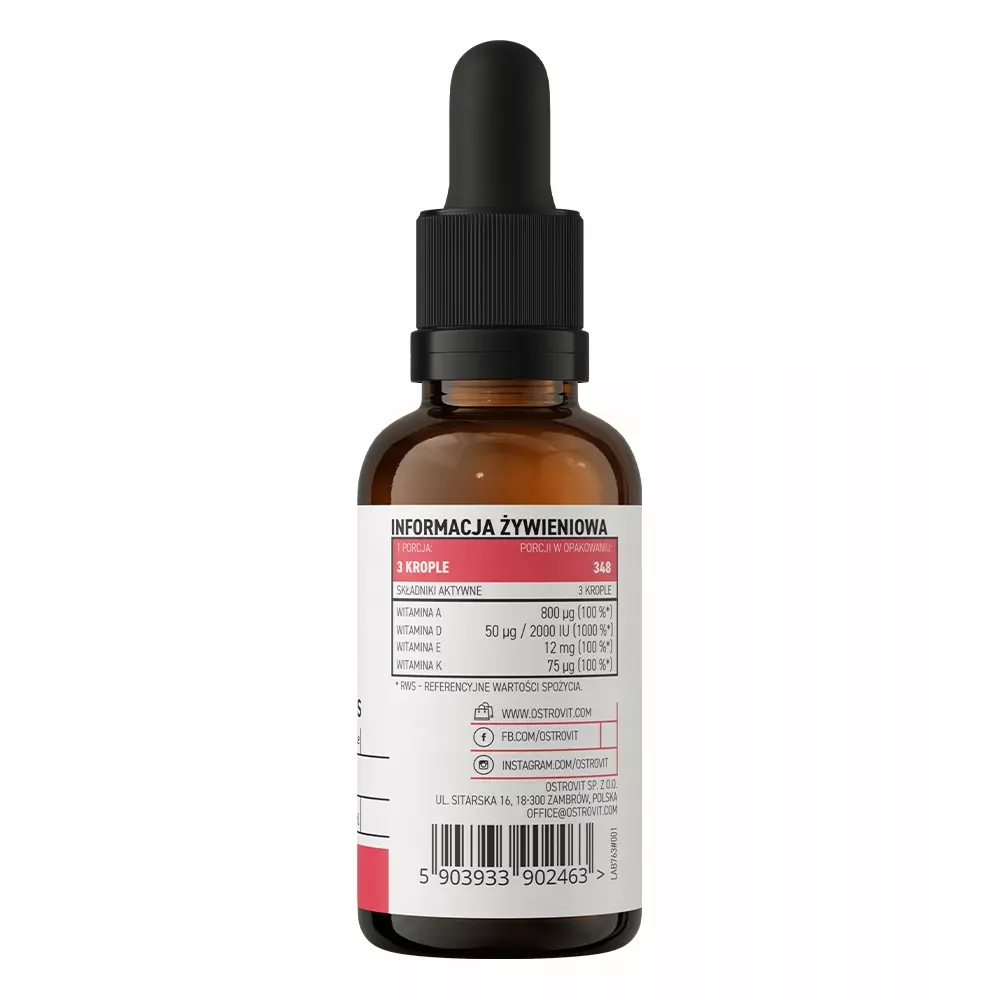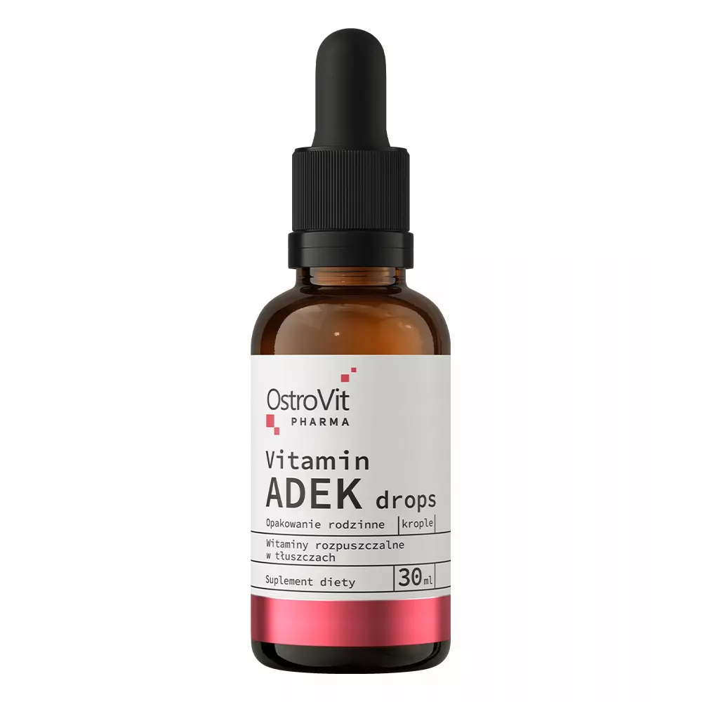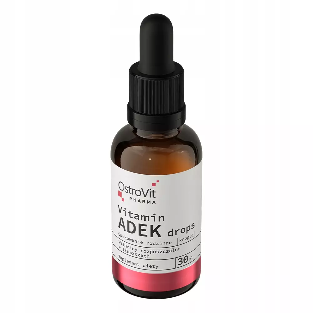 Krople OstroVit Pharma Witaminy ADEK zawierają cztery różne witaminy odgrywające kluczową rolę w organizmie: