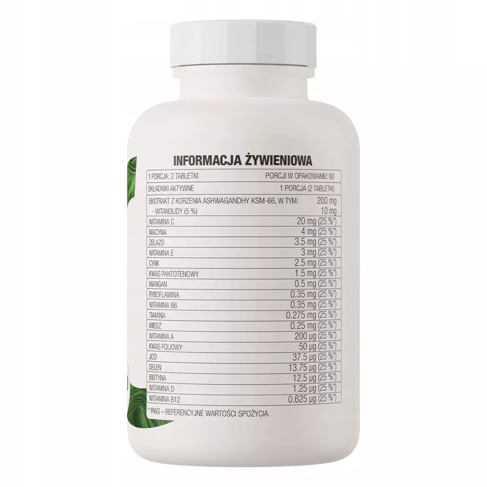 ✅ Zawiera ashwagandhę KSM-66 - preparat dostarcza do organizmu ekstrakt z ashwagandhy KSM-66 standaryzowany na 5% witanolidów.