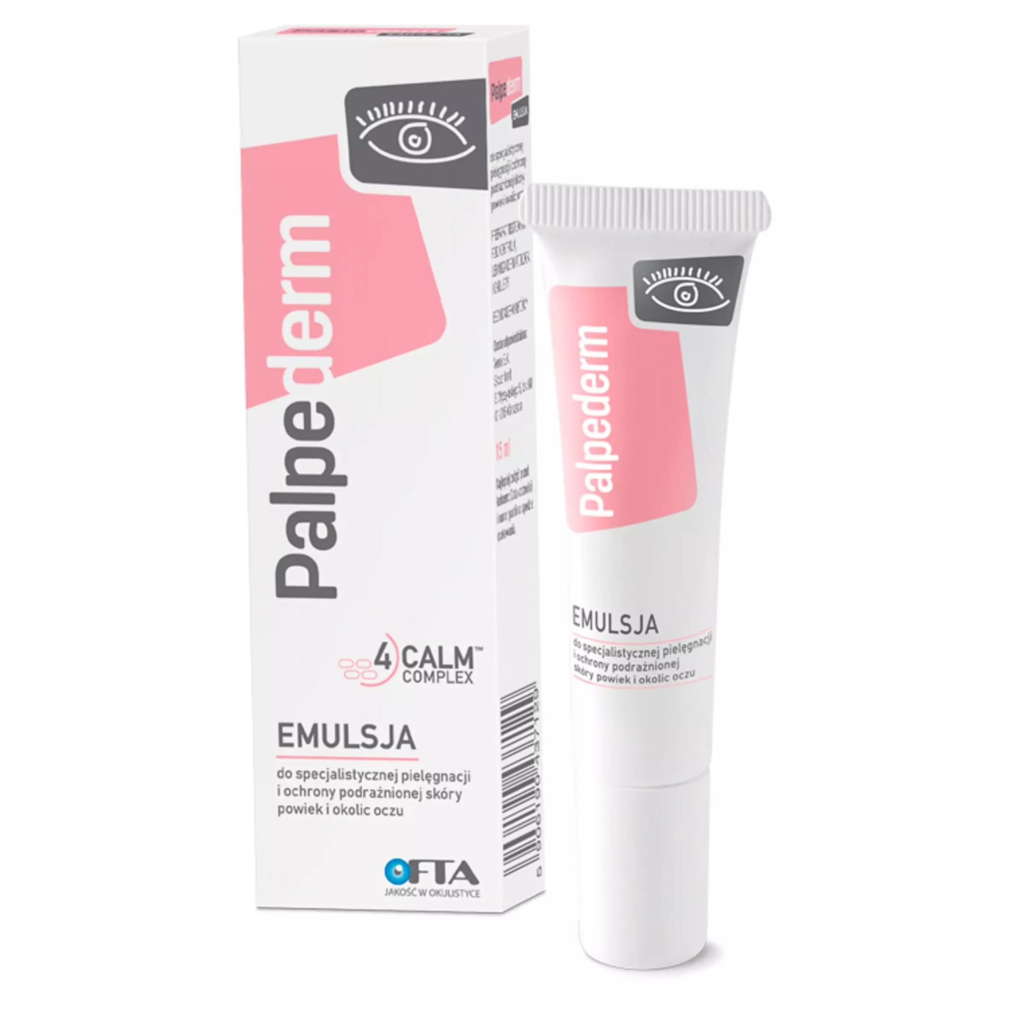 - Palpederm emulsja polecana do stosowania w przypadku podrażnionej, swędzącej oraz przesuszonej skóry powiek i okolic oczu.