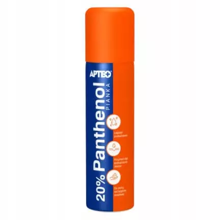 Panthenol APTEO 20%, w postaci pianki, przeznaczony jest do pielęgnacji skóry bardzo wrażliwej, podrażnionej i suchej, szczególnie na skutek długotrwałej ekspozycji na słońce, podrażnień termicznych oraz innych czynników zewnętrznych (wysokie temperatury, wiatr, mróz). Nadaje się do stosowania na twarz i ciało dzieci i dorosłych. D-pantenol zawarty w piance działa łagodząco, poprawia elastyczność i nawilżenie skóry oraz stymuluje regenerację. Do pielęgnacji skóry bardzo wrażliwej, zaognionej lub przesuszonej na skutek działania czynników zewnętrznych, takich jak długotrwała ekspozycja na słońce lub stymulacja termiczna.