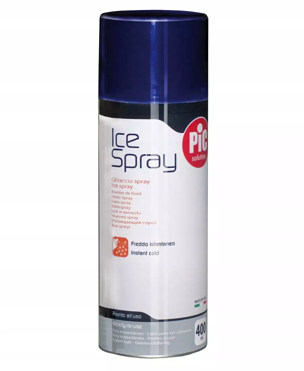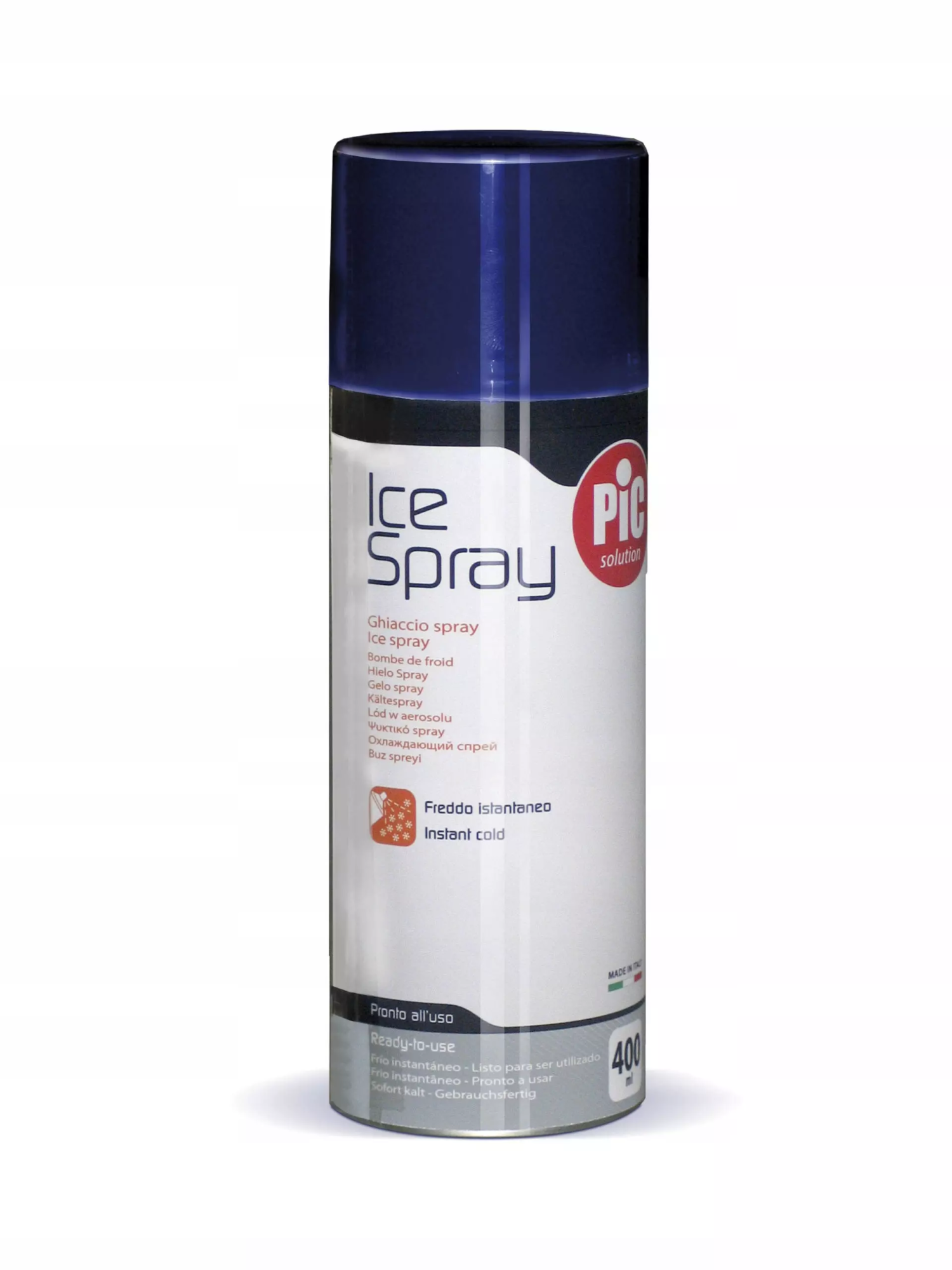 PIC Ice Spray to lód w aerozolu do stosowania miejscowego, który przynosi natychmiastową ulgę dzięki silnemu działaniu chłodzącemu. Łatwo się wchłania i nie pozostawia tłustej warstwy. Wskazania: Stłuczenia lub zwichnięcia Działanie: Wspomagające w redukcji bólu związanej z siniakami, skręceniami, zwichnięciami, napięciami mięśniowymi, zapaleniami ścięgien lub złamaniami. Produkt opóźnia pojawienie się siniaków i zmniejsza obrzęki poprzez opóźnienie zatrzymywania się płynów. Pozwala na kontynuację aktywności sportowej, gdy obrażenia nie są poważne. Sposób użycia: Spryskiwać miejsce urazu z odległości 25 cm nie dłużej niż przez 5 sekund. Unikać spryskiwania otarć, ran i nabłonka.