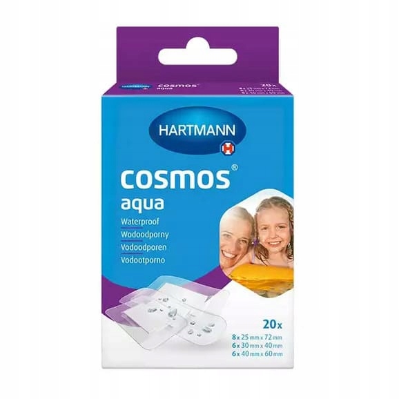 COSMOS AQUA Plastry wodoodporne w ekonomicznym opakowaniu 20 plastrów w 3 rozmiarach. Plastry przeznaczone do szybkiego i higienicznego opatrywania niewielkich ran i skaleczeń. Chronią rany przed zabrudzeniami, a także pozwalają skórze oddychać. Opatrunek nie przykleja się do rany, a przyjazna dla skóry folia w cielistym kolorze jest praktycznie niewidoczna. Dodatkowo odrywają się bezboleśnie i nie pozostawiają na skórze śladu.
