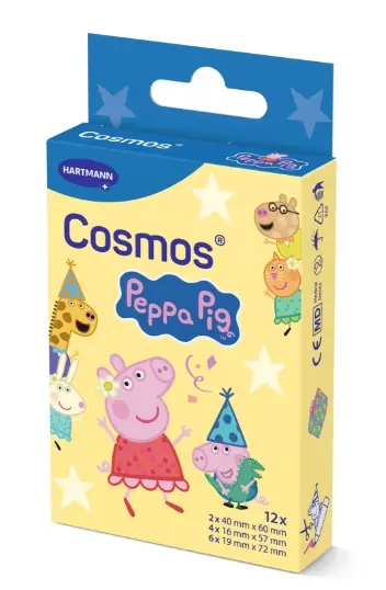 Cosmos® Peppa Pig to kolorowe, jednorazowe plastry samoprzylepne, idealne dla dzieci i dorosłych. Delikatnie przywierają do skóry, chroniąc drobne skaleczenia i zadrapania. Są bezpieczne do stosowania zarówno na zdrową skórę, jak i na niewielkie uszkodzenia naskórka.