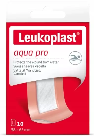 Leukoplast aqua pro to wodoszczelny plaster na drobne urazy, który chroni skaleczenia i otarcia przed patogenami, takimi jak bakterie lub grzyby. Pomaga w ten sposób zapobiegać infekcjom.