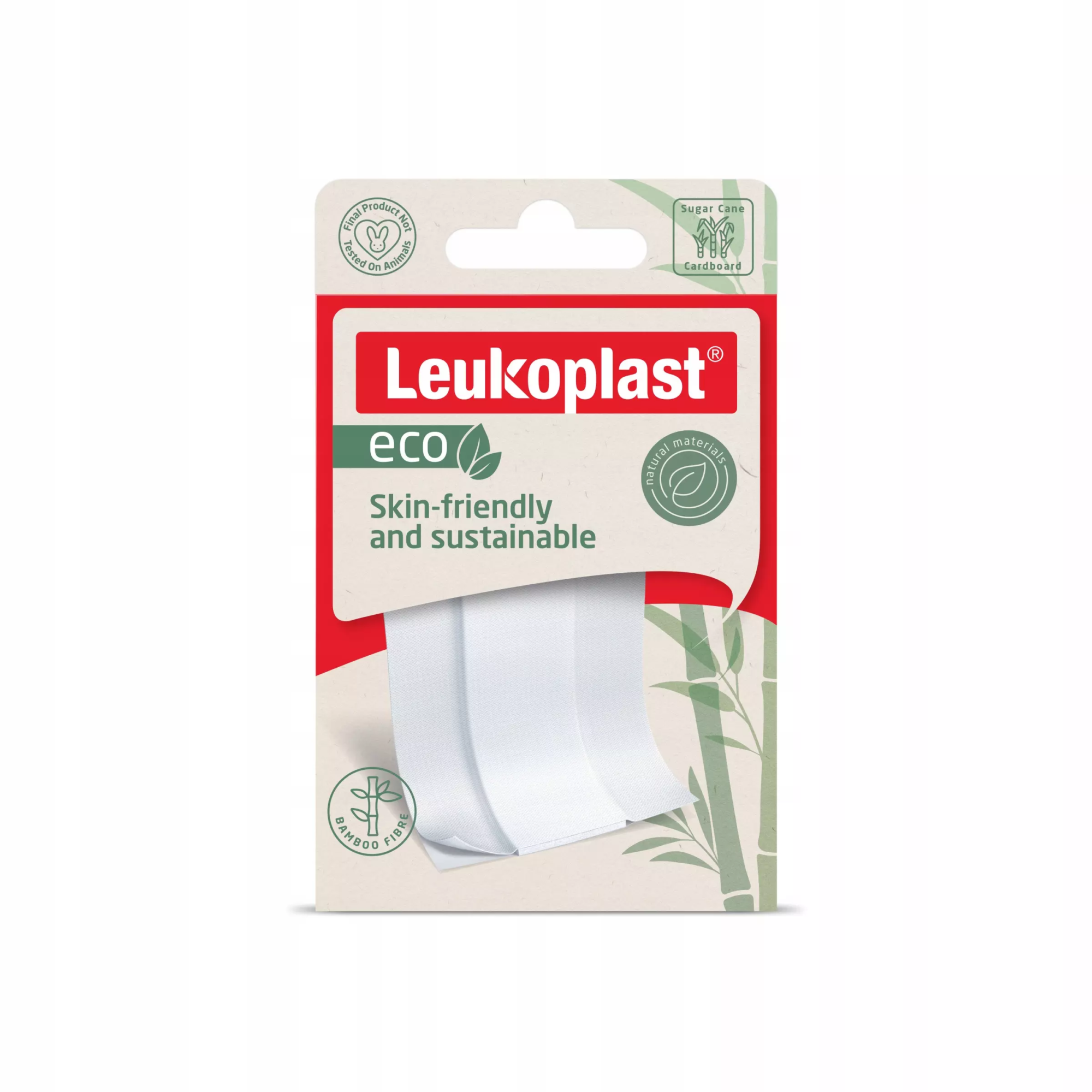 Plastry do cięcia z opatrunkiem Leukoplast eco przyjazne dla skóry i środowiska. Wykonane z naturalnego, miękkiego włókna bambusowego. Charakteryzują się wysoką chłonnością i długotrwałą przyczepnością. Minimum 90% użytych materiałów jest przyjazne dla środowiska.