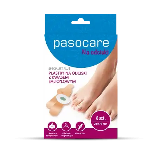 Plastry na odciski z kwasem salicylowym Pasocare Specialist Plus to wyrób medyczny przeznaczony do opatrywania i wsparcia gojenia odcisków na skórze.
