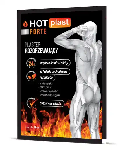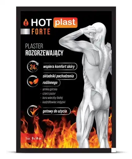 HOT PLAST FORTE - Plaster rozgrzewający samoprzylepny z formułą zaprojektowaną, aby łągodzić i równoważyć zdrowie skóry, przynosząc ulgę w miejscu nałożenia. Swoje dobroczynne działanie zawdzięcza starannie opracowanej unikalnej kompozycji naturalnych ekstraktów roślinnych.