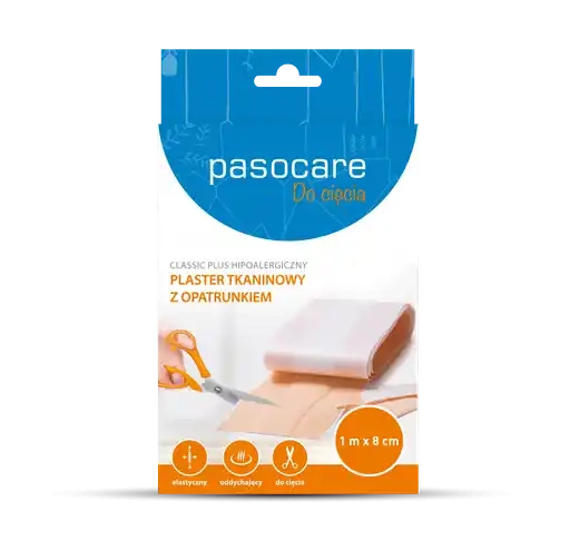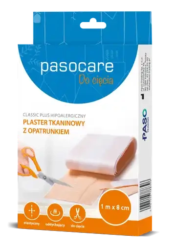 Plaster do cięcia, wykonany z mocnej i wytrzymałej tkaniny w cielistym kolorze. Posiada wysokochłonny i nieprzywierający opatrunek