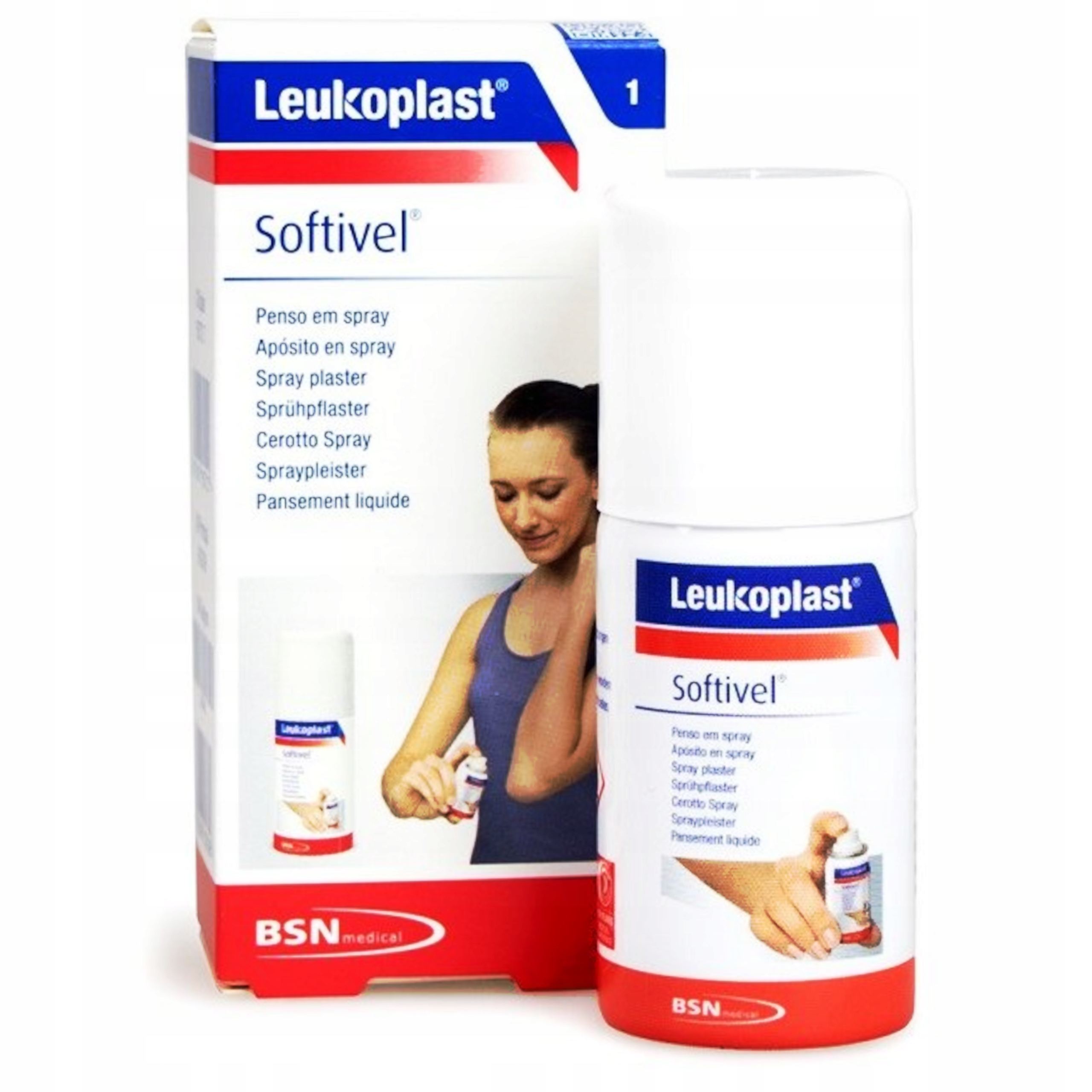 Opatrunek w spray’u Leukoplast Softivel to wyrób medyczny na otarcia i niewielkie skaleczenia. Po zastosowaniu na powierzchni uszkodzonej skóry preparat natychmiast tamuje krwawienia. Dodatkowo spray dezynfekuje skórę, chroniąc rany przed zanieczyszczeniami i bakteriami. Formuła hydrożelu tworzy na powierzchni skóry w 100% wodoszczelną i przezroczystą warstwę ochronną. Co ważne jest ona oddychająca, co zapobiega maceracji skóry i przyspiesza fizjologiczne procesy gojenia ran.
