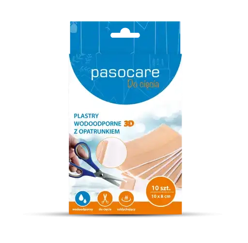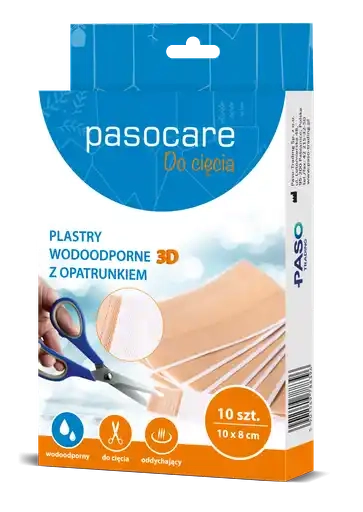 PASOCARE - plastry wodoodporne 3D plus (1 m x 8 cm), jest hipoalergicznym, wodoodpornym opatrunkiem służącym do zabezpieczania drobnych ran, otarć i skaleczeń.