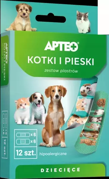 Plastry Dla Dzieci Kotki Pieski Apteo Hipoalergiczne 12 Sztuk