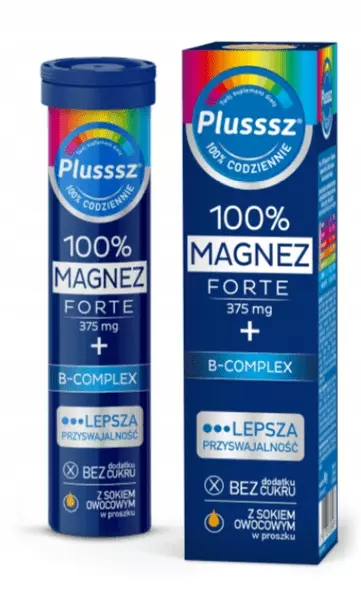 Plusssz 100% Magnez Forte+ B Complex Tabletki Musujące 20 Sztuk
