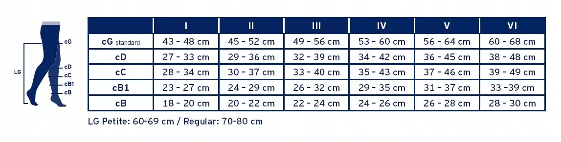 LG Petite: 60-69 cm / Regular: 70-80 cm