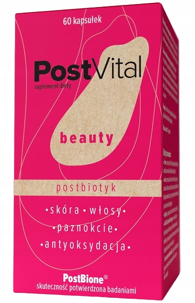 Postbiotyk PostVital Beauty to kolejny krok w myśleniu o optymalnie skutecznej i w pełni naturalnej suplementacji na miarę XXI wieku. Zaprojektowana w naszych laboratoriach, innowacyjna formuła preparatu dedykowana jest wszystkim, którzy chcą zadbać o swoje piękno w więcej niż jednym wymiarze. Suplement diety PostVital Beauty sprzyja zachowaniu zdrowego, atrakcyjnego wyglądu włosów, skóry i paznokci oraz chroni przed niekorzystnym wpływem stresu oksydacyjnego.