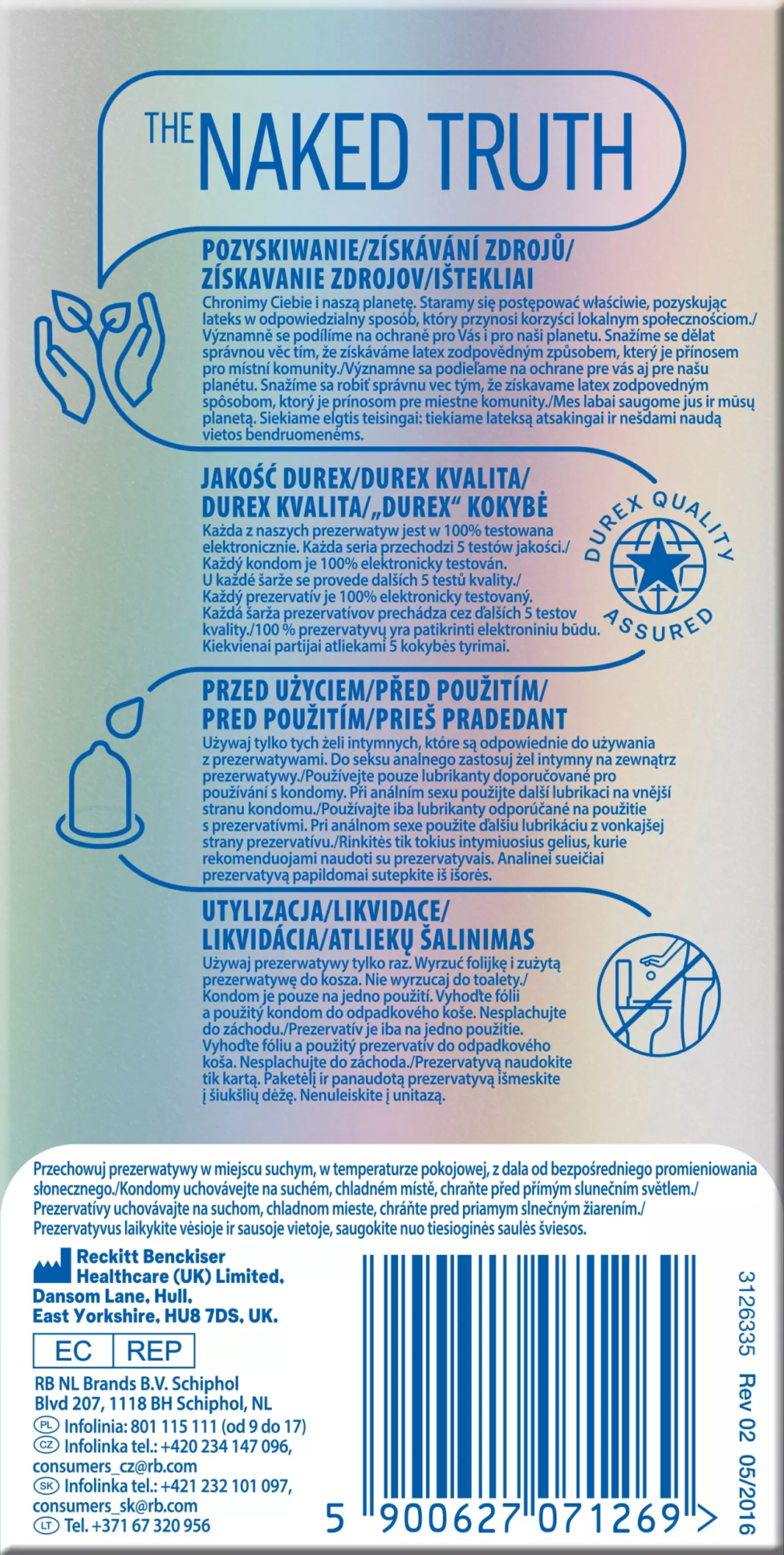 Prezerwatywy Durex. Producent: Reckitt Benckiser Healthcare (UK) Limited Upoważniony przedstawiciel: RB NL Brands B.V. Podmiot prowadzący reklamę: Reckitt Benckiser (Poland) S.A.