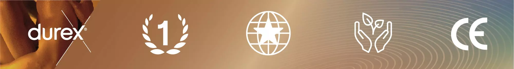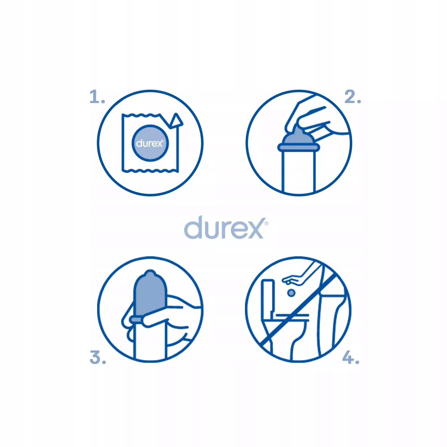 Każda z prezerwatyw Durex została zaprojektowana z myślą o Tobie – pokryta odpowiednią do Twoich potrzeb ilością lubrykantu (o standardowej lub zwiększonej ilości lubrykantu) oraz zakończona zbiorniczkiem dla bardziej komfortowego i przyjemniejszego doświadczenia. Aby ułatwić założenie, logo Durex na folijce wskazuje spód prezerwatywy. Możesz swobodnie cieszyć się chwilą i czerpać przyjemność z dobrego seksu!