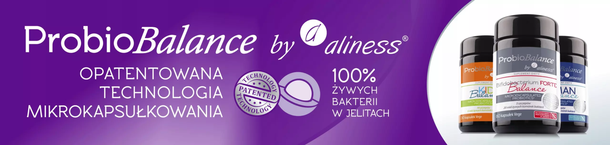 Zalety: ✅ Zawiera 10 szczepów, 5 mld żywych komórek bakterii, ✅ Wspiera układ pokarmowy, ✅ Korzystnie wpływa na mikroflorę jelitową, ✅ Zawiera babkę lancetowatą, ✅ Nie zawiera laktozy, soi, glutenu, ✅ bez GMO. OPIS ProbioBalance by Aliness® KIDS Balance to specjalnie wyselekcjonowane szczepy bakterii dedykowane dzieciom, już od 1. roku życia. ProbioBalance by Aliness® Kids Balance zawiera mix 10 szczepów bakterii: Lactobacillus rhamnosus GG Bifidobacterium breve BR03 Bifidobacterium animalis lactis BS01 Lactobacillus paracasei LPC00 Lactobacillus plantarum LP09 Lactobacillus rhamnosus LR05 Lactobacillus casei LC03 Bifidobacterium bifidum BB01 Streptococcus thermophilus YO8 Bifidobacterium longum BL03 ProbioBalance by Aliness® KIDS Balance zawiera 5 miliardów bakterii w każdej kapsułce. Każda bakteria została pokryta podwójną warstwą lipidową zapewniającą skuteczną barierę i umożliwiającą bezpieczne przechodzenie bakterii przez kwaśne środowisko żołądka, aby dotrzeć do jelit w stanie nienaruszonym, gdzie ma wykazywać swoją aktywność biologiczną. _____________________________________________________________________________________________________ Składniki 1 kapsułka 2 kapsułki (porcja dzienna) Prebiotyk - Polisacharyd Fibregum™ Bio LAW (aw<0,2%) 100 mg 200 mg MICROENCAPSULATED PROBIOTIC BLEND: 5*109 cells 10*109 cells Lactobacillus rhamnosus GG 2*109 cells 4*109 cells Bifidobacterium breve BR03 2*109 cells 4*109 cells Bifidobacterium animalis lactis BS01 0,6*109 cells 1,2*109 cells Lactobacillus paracasei LPC00 0,2*109 cells 0,4*109 cells Lactobacillus plantarum LP09 0,2*109 cells 0,4*109 cells Lactobacillus rhamnosus LR05 0,1*109 cells 0,2*109 cells Lactobacillus casei LC03 0,1*109 cells 0,2*109 cells Bifidobacterium bifidum BB01 0,1*109 cells 0,2*109 cells Streptococcus thermophilus YO8 0,1*109 cells 0,2*109 cells Bifidobacterium longum BL03 0,1*109 cells 0,2*109 cells (1*109 cells =1 miliard) _____________________________________________________________________________________________________ Aliness ProbioBALANCE KIDS Probiotyk DLA DZIECI Układ pokarmowy Odporność Informacje ogólne Składniki: Prebiotyk - Polisacharyd Fibregum™ Bio LAW (aw<0,2%), Babka Lancetowata - ekstrakt (Plantago Lanceolata), Lactobacillus rhamnosus GG ATCC 53103, Bifidobacterium breve BR03, Bifidobacterium animalis lactis BS01, Lactobacillus paracasei LPC00, Lactobacillus plantarum LP09, Lactobacillus rhamnosus LR05, Lactobacillus casei LC03, Bifidobacterium bifidum BB01, Streptococcus thermophilus YO8, Bifidobacterium longum BL03, otoczka bakterii: estry glicerynowe kwasów tłuszczowych, otoczka kapsułki (hydroksypropylometyloceluloza). *Babka Lancetowata przyczynia się do utrzymania normalnego funkcjonowania jelit Sposób użycia: 1-2 kapsułki dziennie podczas posiłku. Nie przekraczać zalecanej porcji do spożycia w ciągu dnia. Suplement diety nie może być stosowany jako substytut zróżnicowanej diety. Zrównoważony sposób żywienia oraz zdrowy tryb życia są podstawą prawidłowego funkcjonowania organizmu. Przechowywanie: Produkt może być przechowywany w warunkach pokojowych. Chłodzenie wydłuży okres przydatności do spożycia. Należy unikać temperatur powyżej 25 °C. Przechowywać w sposób niedostępny dla małych dzieci. Dedykowana Seria Produktów ProbioBALANCE to rewolucyjna i kompleksowa seria 10 produktów probiotycznych o specjalnie wyselekcjonowanych szczepach bakterii, dedykowanych do różnych grup wiekowych, wspomagająca prawidłowe funkcjonowanie jelit. Produkty zostały opracowane przez polskich i włoskich technologów. Bakterie Mikrokapsułowe: Opatentowana technologia MICROENCAPULACJI to podwójna warstwa lipidowa otaczająca komórkę bakteryjną. Tak rewolucyjne rozwiązanie gwarantuje prawie 100 % przeżywalności bakterii przy przejściu przez żołądek/dwunastnicę. Bakterie mikrokapsułkowane są kilka razy mocniejsze niż liofilizaty , dlatego wystarczy 5 razy mniej bakterii, żeby uzyskać taki sam stopień kolonizacji w jelita. * Zastosowanie mikrokapsułkowanych bakterii kwasu mlekowego wymaga specyficznej, opatentowanej metody analizy, dostępnej u producenta, w celu ilościowego określenia żywych komórek bakterii (cytometrii przepływowej). Patent no RM2009A000591. Niska Aktywność Wodna (AW): Bakterie probiotyczne są bardzo wrażliwe na środowisko wodne. Producenci często stosują jako wypełnienie różnego rodzaju błonniki czy też inulinę. Ich środowisko nie jest korzystne dla bakterii, ponieważ ich aktywność wodna jest powyżej aw 0,2. Aktywność wodna nośnika ma w przypadku probiotyków kolosalne znaczenie. To właśnie nośnik ma największy kontakt z bakteriami przez cały czas. Jeżeli aktywność wodna jest powyżej aw 0,2 to enzymy zawarte w bakteriach zaczynają się aktywować doprowadzając do ich niszczenia. Jeżeli nie stosujemy nośnika o odpowiedniej aktywności wodnej, to różne, stosowane przez producentów zabezpieczenia, takie jak kapsułki celulozowe, DerrCaps czy nawet blistry alu-alu na niewiele się zdadzą. Produkty ProbioBALANCE jako pierwsze na świecie świecie zawierają innowacyjny PREBIOTYK – złożony polisacharyd (dietetyczny błonnik rozpuszczalny) Fibregum™ Bio Law (posiada certyficat organic/BIO) o aktywności wodnej poniżej aw<0,2 czyli bezpiecznej dla bakterii. Enzymy w bakteriach przy tak niskiej aktywności wodnej nie wpływają na metabolizm bakterii. Dodatkowo Fibregum™ jest doskonałym prebiotykiem o dużo lepszym działaniu niż inulina. W przeciwieństwie do inuliny Fibregum™ jest dużym polisacharydem jest on fermentowany przez bakterie wolniej (ma wydłużony czas fermentacji) bez gazów, wzdęć jak to ma miejsce przy inulinie. Butelki ze Szkła Fioletowego: (Violet Glass) Szkło fioletowe działa jak naturalny filtr, który chroni przed światłem słonecznym i poprawia jakość wrażliwych substancji. Szkło fioletowe
