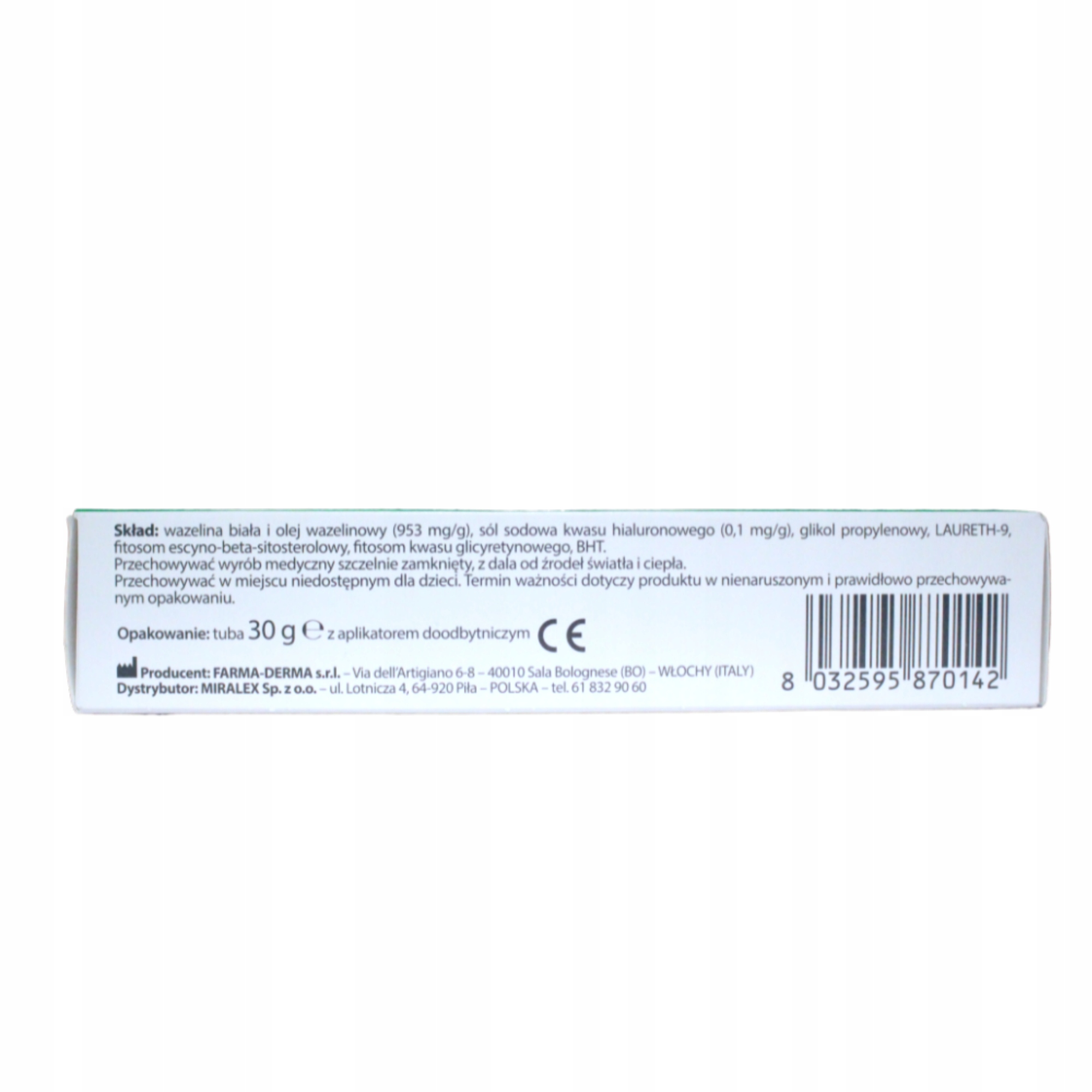 Wazelina biała, olej wazelinowy, glikol propylenowy, polidokanol, fitosomy escyną-β-sitosterolu, fitosomy kwasu glicyryzynwego, BHT, parahydroksybenzoesan propylu, parahydroksyenzoesan izobutylu, parahydroksybenzoesan metylu, sól sodowa kwasu hialuronowego.