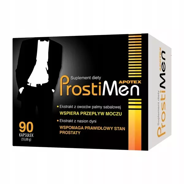 jest skoncentrowanym źródłem aż 4 składników roślinnych oraz witamin i minerałów, opracowanym z myślą o mężczyznach w celu uzupełnienia ich codziennej diety.Wszystkie ekstrakty roślinne produktu ProstiMen Apotex są standaryzowane, dzięki czemu posiadają dokładnie określoną zawartość składników czynnych, odpowiadających za bezpieczeństwo stosowania i określone działanie fizjologiczne.- Ekstrakty z nasion dyni, korzenia pokrzywy i owoców wierzbownicy drobnokwiatowej przyczyniają się do utrzymania prawidłowego stanu prostaty.- Ekstrakty z owoców palmy sabalowej i nasion dyni wspomagają prawidłowy przepływ moczu.