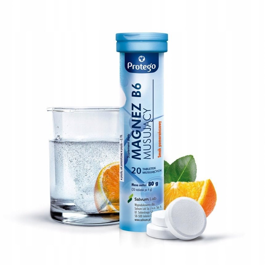 Protego Magnez B6 Musujący to suplement diety w postaci tabletek musujących zawierający magnez oraz witaminę B6.