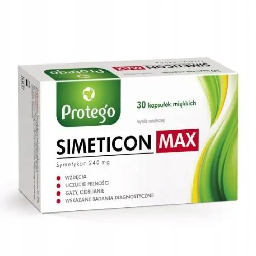 Protego SIMETICON MAX to wyrób medyczny przeznaczony do stosowania w celu łagodzenia uczucia pełności, uczucia wzdęcia, odbijania, dolegliwości związanych z nadmiernym gromadzeniem się gazów oraz powietrza w przewodzie pokarmowym, które powodują napięcie i ucisk w jelitach